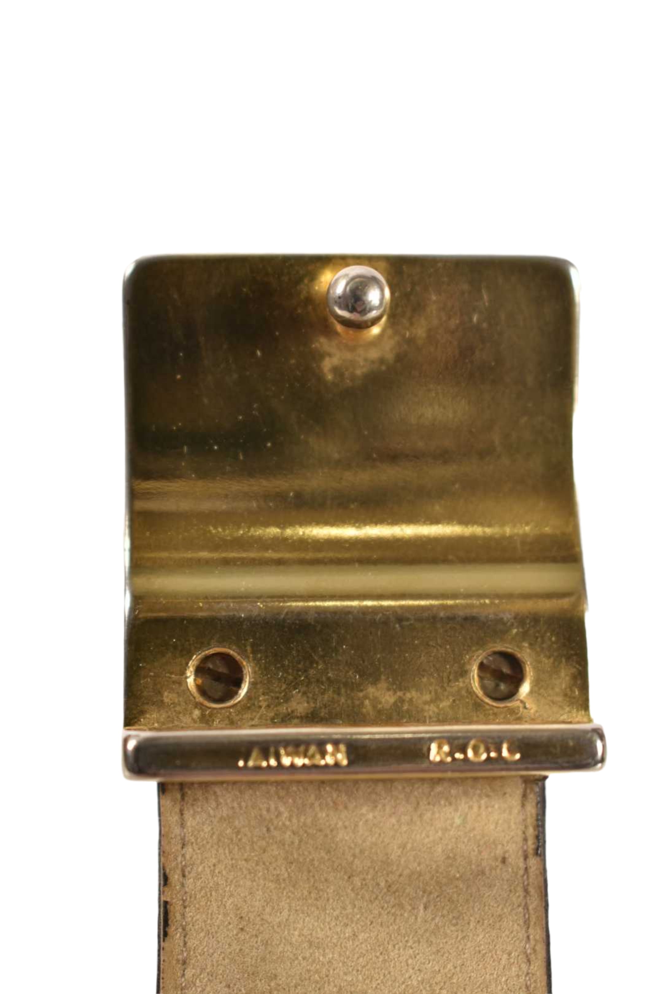 1980s YVES SAINT LAURENT YSL Brown Cowhide Leather Inlaid Buckle Belt 38"